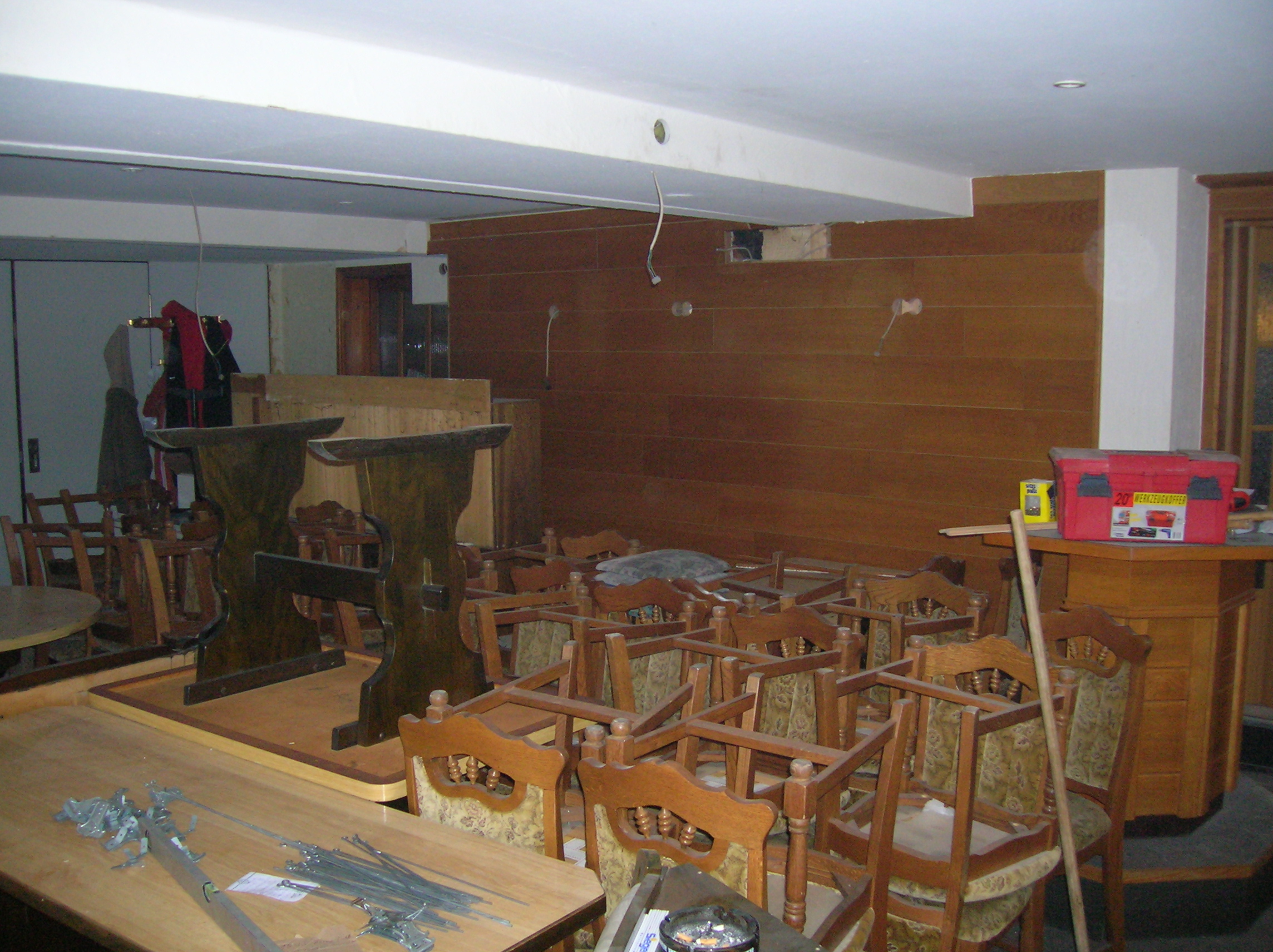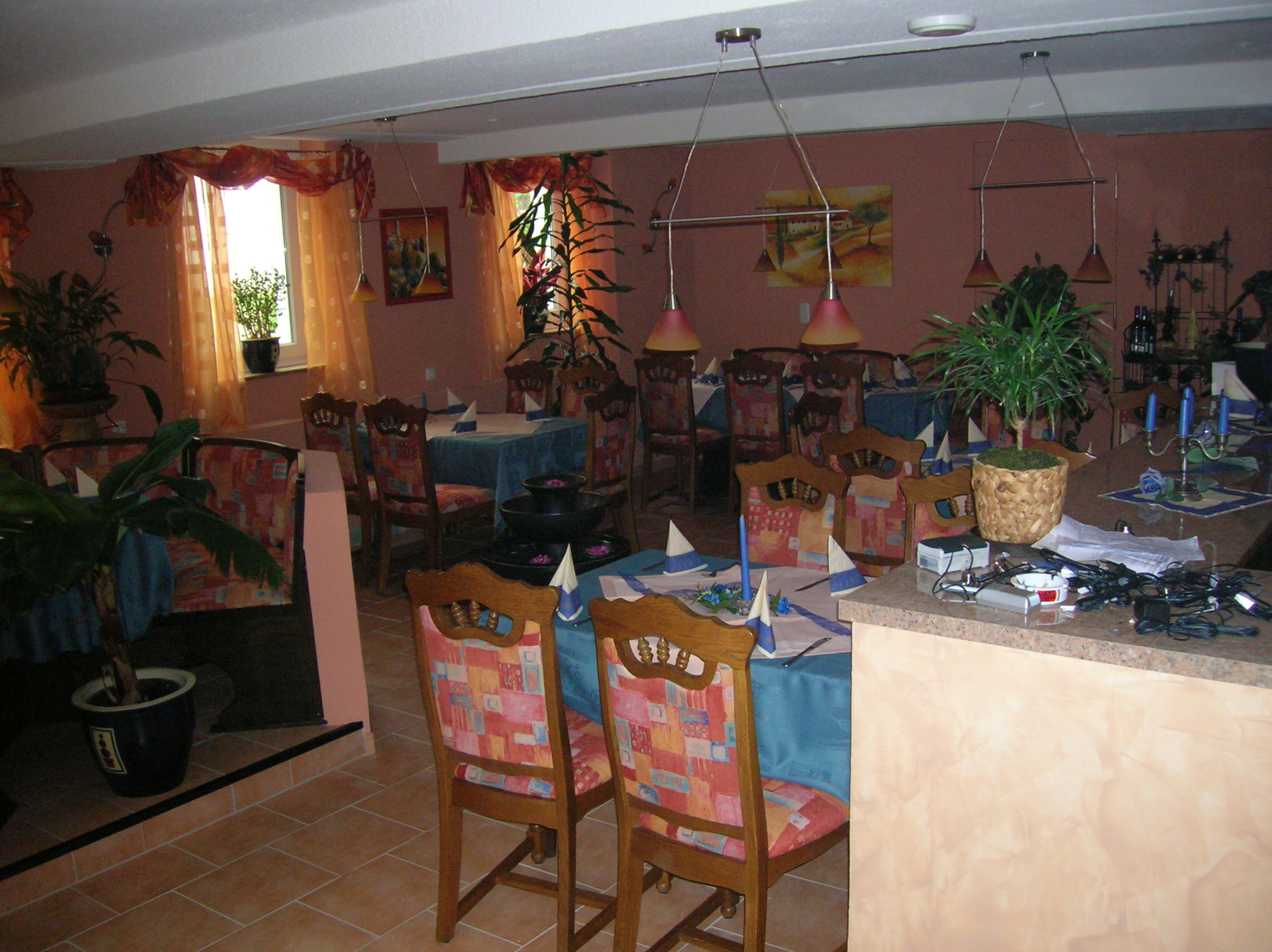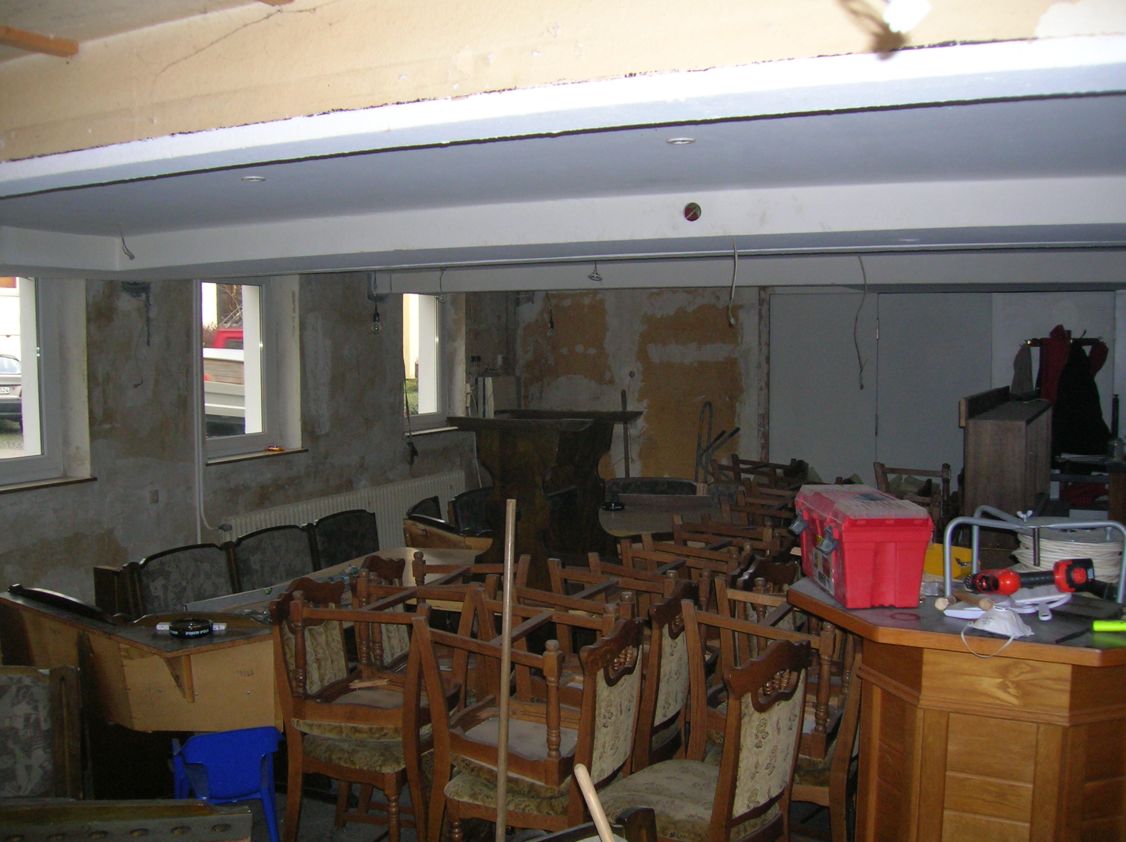 Wände: Gipsputz gefilzt und gestrichen, Marmor-Spachteltechnik
